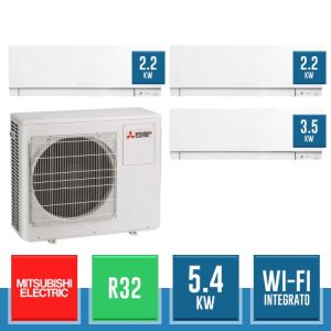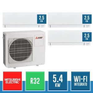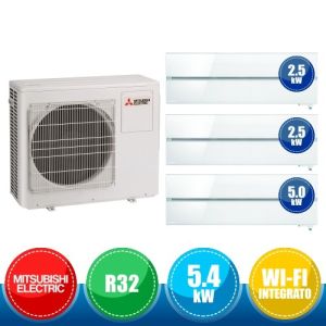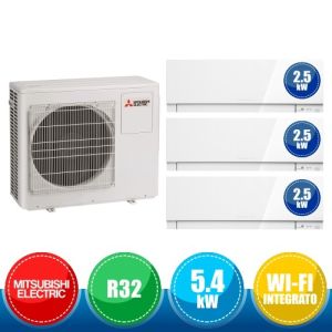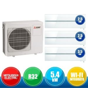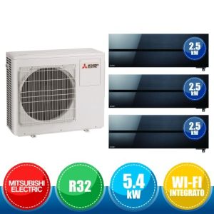 Kit trialsplit Mitsubishi Electric composed of outdoor motor MXZ-3F54VF (18000 BTU, R32 gas and energy class A+++) and 3 wall mounted indoor units MSZ-LN25VGB (9000 BTU, R32 gas and energy class A+++) black onice.