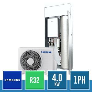 A complete Ecodan InWall built-in system is composed of the following components (also available separately): galvanized sheet metal cabinet, complete hydraulic kit, 200 liter hot water boiler, HydroBox module, DHW storage thermistor and external motor (Ecodan or Zubadan).