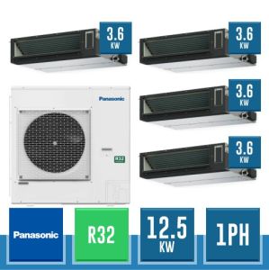 Combinaison Daikin Sky Air Double Twin ADVANCE composée par nr.1 moteur externe triphasé RZASG125MY1 de 42000 BTU, de nr.4 unites internes canalisables à moyenne prévalence DC Inverseur FBA35A9 de 12000 BTU et par nr.1 joint KHRQ58T. Ce kit est alimenté par gaz réfrigérant R32 et appartient à la classe énergétique A+.