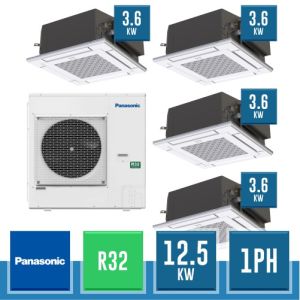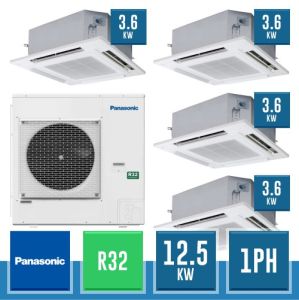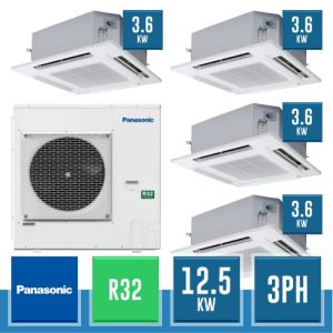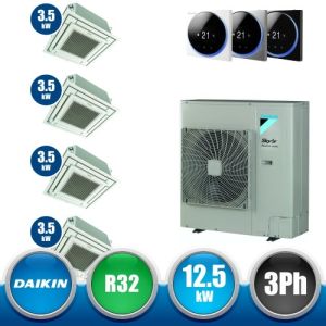 Combinaison Daikin Sky Air Double Twin ADVANCE composée par nr.1 moteur externe triphasé RZASG125MY1 de 42000 BTU, de nr.4 unites internes à cassette Fully Flat à 4 roues avec grille blanche FFA35A de 12000 BTU et par nr.1 joint KHRQ58T. Ce kit &ègrave; alimenté par gaz réfrigérant R32 et appartient à la classe énergétique A+.