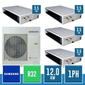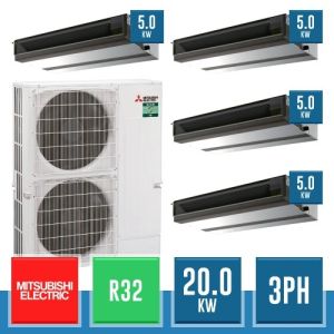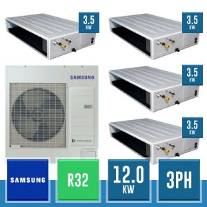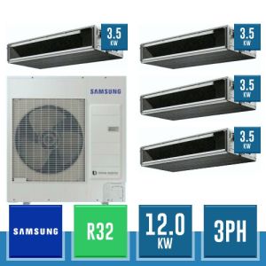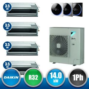 Combinaison Daikin Sky Air Double Twin ADVANCE composée par nr.1 moteur externe triphasé RZASG140MY1 de 48000 BTU, de nr.4 unites internes canalisables à moyenne prévalence DC Inverseur FBA35A9 de 12000 BTU et par nr.1 joint KHRQ58T. Ce kit est alimenté par gaz réfrigérant R32 et appartient à la classe énergétique A.