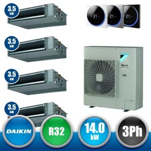 Combinaison Daikin Sky Air Double Twin ADVANCE composée par nr.1 moteur externe triphasé RZASG140MY1 de 48000 BTU, de nr.4 unites internese canalisables ultraplates BluEvolution FDXM35F3 de 12000 BTU et par nr.1 joint KHRQ58T. Ce kit est alimenté par gaz réfrigérant R32 et appartient à la classe énergétique A.