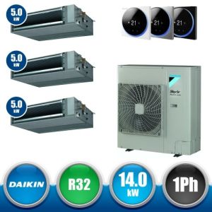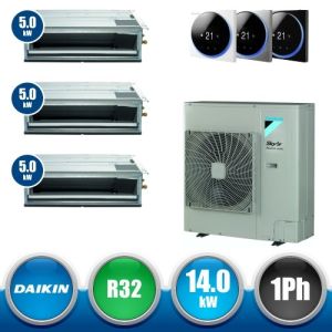 Combinaison Daikin Sky Air Triple ADVANCE composée par nr.1 moteur externe triphasé RZASG140MY1 de 48000 BTU, de nr.3 unites internes canalisables à moyenne prévalence DC Inverseur FBA50A9 de 18000 BTU et par nr.1 collecteur KHRQ58H. Ce kit est alimenté par gaz réfrigérant R32 et appartient à la classe énergétique A.