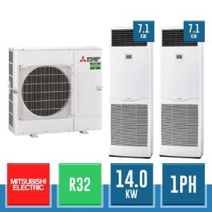 Combinaison Daikin Sky Air Twin ADVANCE composée par nr.1 moteur externe triphasé RZASG140MY1 de 42000 BTU, de nr.2 unites internes suspendues au plafond DC Inverseur FUA71A de 24000 BTU et par nr.1 joint KHRQ58T. Ce kit est alimenté par gaz réfrigérant R32 et appartient à la classe énergétique A.