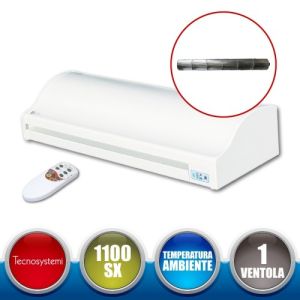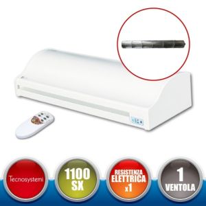 Tecnosystemi barriera d'aria tangenziale commerciale 1100 SX ad aspirazione superiore con singola resistenza elettrica Aria 3 Silence, con telecomando per accensione, spegnimento e regolazione delle 3 velocità disponibili, staffette distanziatrici per aggancio a parete e cruscotto con 5 LED colorati. Per questo prodotto è possibile usufruire delle detrazioni fiscali Irpef del 50% e 65% (Scopri come).
