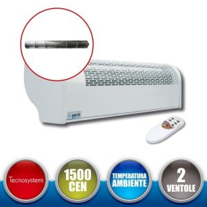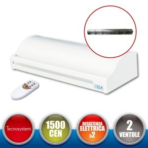 Tecnosystemi barriera d'aria tangenziale commerciale 1500 CEN ad aspirazione superiore con doppia resistenza elettrica Aria 3 Silence, con telecomando per accensione, spegnimento e regolazione delle 3 velocità disponibili, staffette distanziatrici per aggancio a parete e cruscotto con 5 LED colorati. Per questo prodotto è possibile usufruire delle detrazioni fiscali Irpef del 50% e 65% (Scopri come).