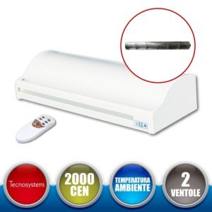Tecnosystemi barriera d'aria tangenziale commerciale 2000 CEN ad aspirazione superiore con singola resistenza elettrica Aria 3 Silence, con telecomando per accensione, spegnimento e regolazione delle 3 velocità disponibili, staffette distanziatrici per aggancio a parete e cruscotto con 5 LED colorati. Per questo prodotto è possibile usufruire delle detrazioni fiscali Irpef del 50% e 65% (Scopri come).