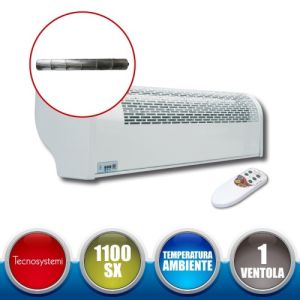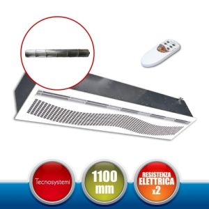 Tecnosystemi barriera d'aria tangenziale commerciale 1100 SX ad aspirazione superiore con doppia resistenza elettrica Aria 3 Silence, con telecomando per accensione, spegnimento e regolazione delle 3 velocità disponibili, staffette distanziatrici per aggancio a parete e cruscotto con 5 LED colorati. Per questo prodotto è possibile usufruire delle detrazioni fiscali Irpef del 50% e 65% (Scopri come).