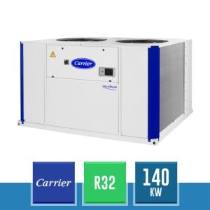 Chiller scroll Carrier 30RB 140R solo freddo condensato ad aria con alimentazione trifase da 140 kW e gas R32. Questa unità è certificata Eurovent e il primo avviamento è incluso nel prezzo.