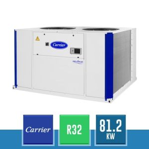 Chiller scroll Carrier 30RB 80R solo freddo condensato ad aria con alimentazione trifase da 80 kW e gas R32. Questa unità è certificata Eurovent e il primo avviamento è incluso nel prezzo.