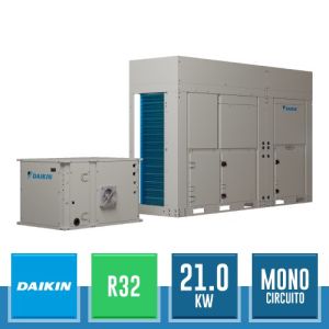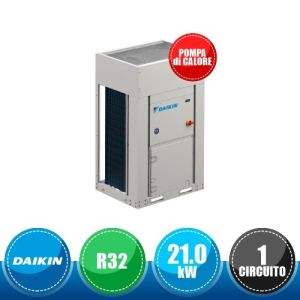 Chiller Daikin monocircuito da 21 kW, in pompa di calore condensata ad aria con compressori Scroll Inverter, in versione Split composto dall'unità interna EWYT021CZI-A1 e dall'unità esterna EWYT021CZO-A1.