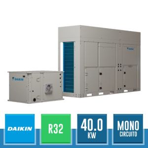 Chiller Daikin monocircuito da 40 kW, in pompa di calore condensata ad aria con compressori Scroll Inverter, in versione Split composto dall'unità interna EWYT040CZI-A1 e dall'unità esterna EWYT040CZO-A1.