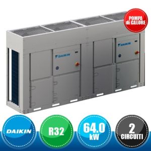 Chiller Daikin a doppio circuito da 64 kW, in pompa di calore condensata ad aria con compressori Scroll Inverter, in versione Split composto dall'unità interna EWYT064CZI-A2 e dall'unità esterna EWYT064CZO-A2.