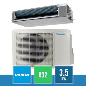 Kit monosplit Daikin Mini SKy Alpha da 12000 BTU, in classe A+ e gas R32, composto dal motore esterno RZAG35B e dall'unità interna canalizzabile ultrapiatta FDXM35F9.