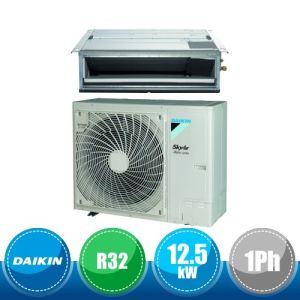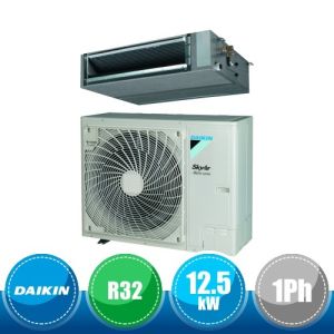 Kit monosplit canalizzato ad alta prevalenza da 42000 BTU, appartenente alla serie SkyAir Advance Series della Daikin in gas R32, con DC Inverter composto dall'unità esterna monofase RZASG125MV e dall'unità interna FDA125A.