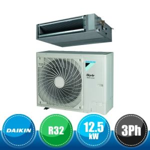Kit monosplit canalizzato ad alta prevalenza da 42000 BTU, appartenente alla serie SkyAir Advance Series della Daikin in gas R32, con DC Inverter composto dall'unità esterna trifase RZASG125MY e dall'unità interna FDA125A.