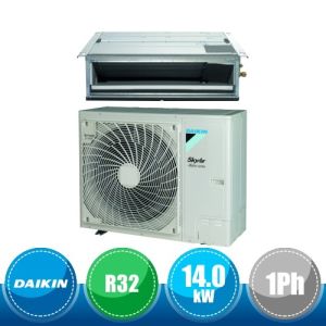 Kit monosplit canalizzato a media prevalenza da 48000 BTU, appartenente alla serie SkyAir Advance Series della Daikin in gas R32, con DC Inverter composto dall'unità esterna monofase RZASG140MV1 e dall'unità interna FBA140A.
