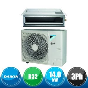Kit monosplit canalizzato a media prevalenza da 48000 BTU, appartenente alla serie SkyAir Advance Series della Daikin in gas R32, con DC Inverter composto dall'unità esterna trifase RZASG140MY e dall'unità interna FBA140A.