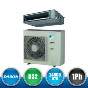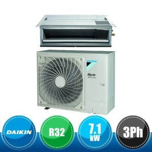 Kit monosplit canalizzato a media prevalenza da 24000 BTU, appartenente alla serie SkyAir Advance Series della Daikin in gas R32, con DC Inverter e classe A++ composto dall'unità esterna monofase RZASG71MV1 e dall'unità interna FBA71A.