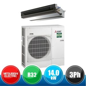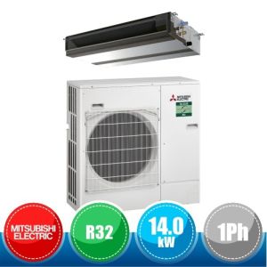 Kit monosplit canalizzato a media prevalenza Mitsubishi Electric da 48000 BTU monofase (DC Inverter e pompa di calore) in gas R32 composto dall'unità esterna PUZ-M140VKA e dall'unità interna canalizzabile a media prevalenza PEAD-M140JA.