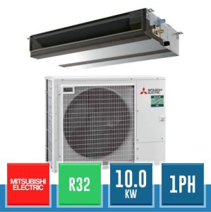 Kit monosplit canalizzato a media prevalenza Mitsubishi Electric da 34000 BTU monofase (DC Inverter e pompa di calore) in gas R32 composto dall'unità esterna PUZ-M100VKA e dall'unità interna canalizzabile a media prevalenza PEAD-M100JA.