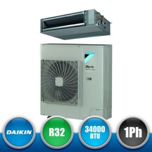 Kit monosplit canalizzato a media prevalenza da 34000 BTU, appartenente alla serie SkyAir Advance Series della Daikin in gas R32, con DC Inverter e classe A+ composto dall'unità esterna trifase RZASG100MY e dall'unità interna FBA100A.