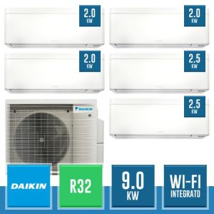 2. DAIKIN 5MXM90A9 + 3x FTXJ20AW + 2x FTXJ25AW9 Kit Pentasplit a Parete Emura Bluevolution R32 - 9.0 kW