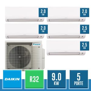 4. DAIKIN 5MXM90A9 + 3x FTXP20N9 + 2x FTXP25N9 Kit Pentasplit a Parete Comfora Bluevolution R32 - 9.0 kW