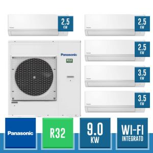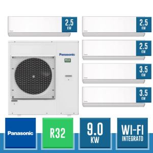 19. PANASONIC CU-5Z90TBE + (3x) CS-Z25ZKEW + (2x) CS-Z35ZKEW Kit PentaSplit Etherea da Parete R32 con Wi-Fi Integrato - 9.0 kW