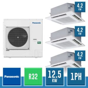 48. PANASONIC U-125PZH4E5 + (3x) S-3650PU3E Kit PACi NX Elite R32 con Tripla Unità a Cassetta 4 Vie 90x90 - 12.5 kW Monofase