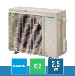 Unità esterna Daikin RXM25A9, con alimentazione monofase da 2.5 kW e gas refrigerante ecologico R32, per applicazioni monosplit con unità interne serie Bluevolution.