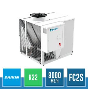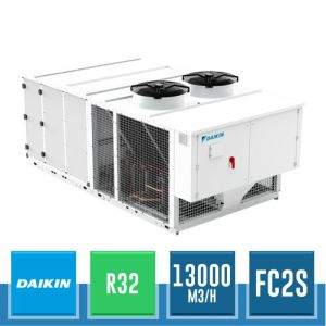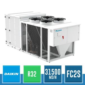 Rooftop monoblocco Full Inverter da 150.0 kW Daikin UATYA150BFC2Y1, versione FC2S a 2 serrande ad aria esterna integrata, dotato di evaporatore capace di trattare un volume d'aria pari a 26500 m3/h. Questa unità, oltre ad essere caratterizzata da un'elevata flessibilità di installazione e da una manutenzione semplificata, garantisce la funzione Free Cooling con apporto d'aria esterna fino al 100% e un risparmio energetico notevole sfruttando l'aria esterna di rinnovo per raffrescare l'edificio.