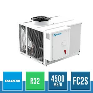Rooftop monoblocco Full Inverter da 180.0 kW Daikin UATYA180BFC2Y1, versione FC2S a 2 serrande ad aria esterna integrata, dotato di evaporatore capace di trattare un volume d'aria pari a 30500 m3/h. Questa unità, oltre ad essere caratterizzata da un'elevata flessibilità di installazione e da una manutenzione semplificata, garantisce la funzione Free Cooling con apporto d'aria esterna fino al 100% e un risparmio energetico notevole sfruttando l'aria esterna di rinnovo per raffrescare l'edificio.