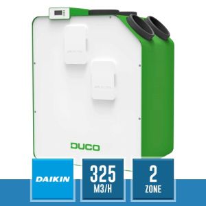 Recuperatore di calore (con heater) DucoBox Energy Premium 325 2ZH, la nuova unità per la ventilazione meccanica controllata (VMC), con una portata d'aria di 325 mc/h e regolazione a 2 zone.