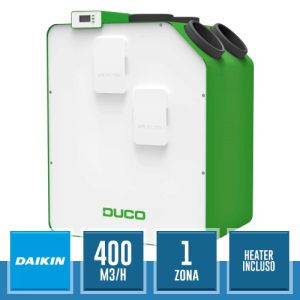 Recuperatore di calore (con heater) DucoBox Energy Premium 400 1ZH, la nuova unità per la ventilazione meccanica controllata (VMC), con una portata d'aria di 400 mc/h e regolazione a 1 zona.