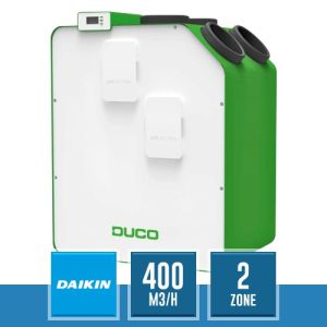 Recuperatore di calore (con heater) DucoBox Energy Premium 400 2ZH, la nuova unità per la ventilazione meccanica controllata (VMC), con una portata d'aria di 400 mc/h e regolazione a 2 zone.