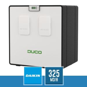 Recuperatore di calore (con heater) DucoBox Energy Premium 325 1ZH, la nuova unità per la ventilazione meccanica controllata (VMC), con una portata d'aria di 325 mc/h e regolazione a 1 zona.