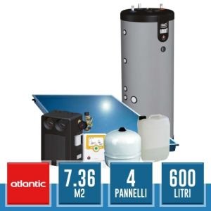 Kit Helio Plan 4x Atlantic ACV con bollitore Smart ME 600, ideale per 6/8 persone, composto da: nr.4 collettori solari Helio Plan 2.0, centralina solare Solar Unit 100, gruppo idraulico Solar Group 100 ERP, vaso di espansione solare da 25 litri e tanica di liquido antigelo (10 lt).