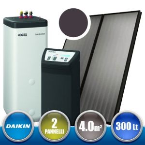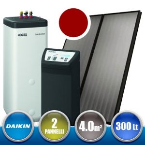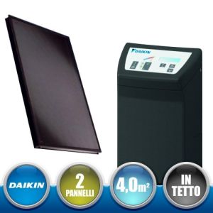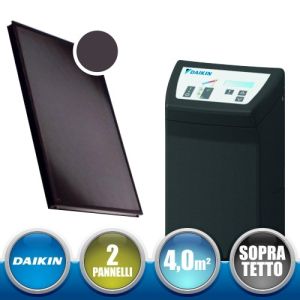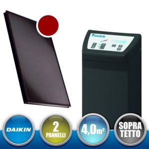 Kit sistema solare in pressione Daikin SB.SK2V21PST (superficie 4 mq), per installazione sopra il tetto, comprensivo di stazione solare, centralina di comando, elementi di montaggio, connessione collettori e tubi di collegamento (15m).