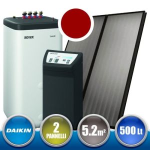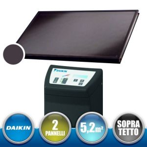 Kit Solaris 2xH26 Daikin SB.SK2H26PST, per installazione sopra tetto, comprensivo di: 2 collettori con superficie totale 5.2 mq, stazione solare con centralina di comando ed elementi di montaggio e connessione.
