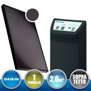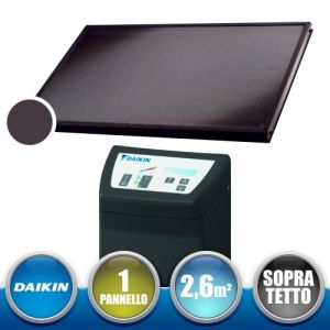 Kit Solaris 1xH26 Daikin SB.SK1H26PST, per installazione sopra tetto, comprensivo di: 1 collettore con superficie 2.6 mq, stazione solare con centralina di comando ed elementi di montaggio e connessione.