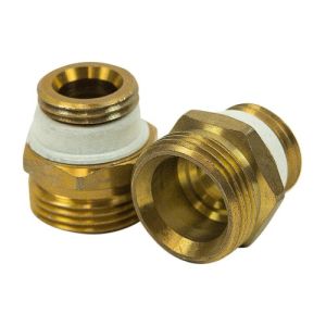 Raccordo doppio auto sigillante con filettatura Daikin EAIPEXCOUPLINA, modello ARU ½" maschio X ¾", per raccordare tubi in PEX in abbinamento al set raccordi a pressione della serie MV. Confezione: 2 pezzi.