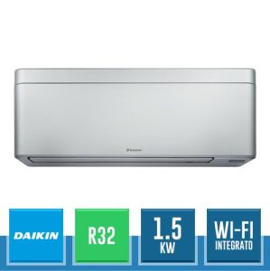 Unità a parete Daikin Stylish CTXA15CS da 1.5 kW, serie Bluevolution in classe A+++ con gas R32 e Wi-Fi integrato, in finitura silver.