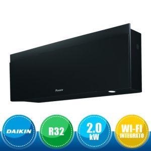 Climatizzatore a parete nero Daikin Emura FTXJ20AB da 2.0 kW, con Inverter e gas R32, dotato di Wi-Fi integrato e Flash Streamer.