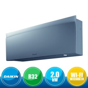Climatizzatore a parete silver Daikin Emura FTXJ20AS da 2.0 kW, con Inverter e gas R32, dotato di Wi-Fi integrato e Flash Streamer.