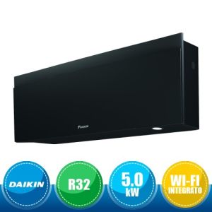 Climatizzatore a parete nero Daikin Emura FTXJ50AB da 5.0 kW, con Inverter e gas R32, dotato di Wi-Fi integrato e Flash Streamer.