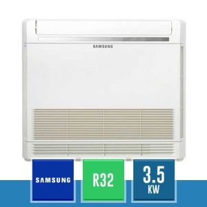 Console a pavimento Samsung AC035RNJDKG/EU da 3.5 kW, gamma Standard Digital Inverter in gas R32, dotata di filtro aria e telecomando wireless che garantisce la doppia mandata dell'aria in riscaldamento.