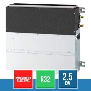 Unità interna a pavimento ad incasso Mitsubishi Electric SFZ-M25VA da 2.5 kW, Serie S in gas R32 con motore del ventilatore dotato di DC Inverter, dalle dimensioni compatte e 4 selezioni di pressione statica.